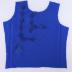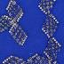 Beaded embroidery sample swatch of a front part of a bodice, made of silver line rocaille beads and rhinestones sewn onto blue synthetic knit by embroidery thread in diamond shapes.