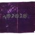 Sequined and beaded embroidery sample swatch made of cup sequins and jet beads on synthetic velvet in a floral vine pattern.