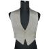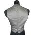 Man’s waistcoat in grey striped silk satin at the front and grey at the back, with shawl collar, pointed bottom edges, and two side pockets. The garment closes at the front with four small round buttons.