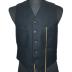 Men's waistcoat in black wool at the front with four side pockets and black silk at the back. The garment is fastened with five round buttons on the last one with an attached golden chain with a round button on the end.