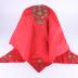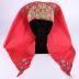Russian folk scarf headgown made of a red silk embroidered with gold threads forming stylized floral shapes and bows, and having two ribbons to be tied around the head.