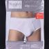 White Oko-Tex Standard 100 cotton slip panty for men from Bexleys man collection, packed in a paper and plastic pouch. The paper indicates the model, the name of the brand and specifications about the product. On the front, an image of a man wearing the slip is represented.