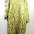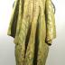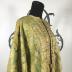 Long men's ottoman kaftan made of silk brocade with golden flowers forming garlands on green background. Long and large rectangular sleeves, opens in the middle with a row of small round buttons on the top, covered with golden thread. Lined inside with white linen.