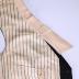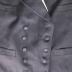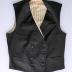 Men's waistcoat in black wool, with notched lapels, embellished with a double row of five metal silk-covered buttons, on either side of the opening, all accompanied by four pockets including two for pocket handkerchief. The back, in black silk satin, can be adjusted using a metal martingale. The vest is lined with white silk with blue stripes. This lining is accompanied by a wide and large pocket closing with a bone button, on the left side and two removable linen lapel linings, each fixed by three linen-covered metal buttons.