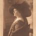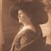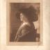 A photograph, cut at chest level, of a woman seated on a three-quarter chair, the background of which is blurred. This lady wears a colorful dress, low-cut on the front and back, richly decorated, over which she has worn a fur coat, a voluminous hat, adorned with feathers and a necklace. This photograph was taken at the Moffett studio in Chicago. This is a photographic portrait of Miss BATCHELDER. This photograph was part of the archives of Colonel Dimitri OZNOBICHINE.