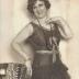 Photograph representing the Russian theater actress, Nina BOYARSKA, who notably played in the Golden Cockerel. She is wearing a sleeveless low-cut dress, with a rhinestone belt creating a visual effect at the waist. The dress ends with tulle flounces and next to the dancer, on a chair, a "Tulle-bi-telli" scarf is placed.