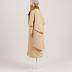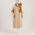 Sable-colored woolen coat with collar and bow at the left lapel trimmed with caramel silk velvet, lined with silk crepe busted to the wool in circles.
