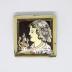 The way the golden paint is applied on the brooch imitates "verre églomisé", a French term referring to the process of applying both a design and gilding onto the rear face of glass to produce a mirror finish.