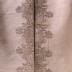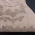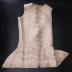 Man's ivory silk waistcoat, with polygonal cutout at the back and pockets at the two sides. The front basque is around twice as long as the back of the waistcoat. It has seven button opening but the buttons are missing. It is embroidered with floral motifs in a similar shade to the base color by the hem, the borders and the pocket flaps.