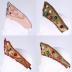 The last kokoshnik is also made of golden brocade with red cotton lining, decorated on the front with pink zigzag cords, forming geometric patterns. It has a round medallion metal decoration in the center with tiny rhinestones. It is also embellished with multicolour gems in different shapes, and four round mirror circles.