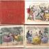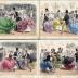 Rare book consisting of a red bookbinding percaline cover with a gilt letters title on the front cover, including inside a suite of twelve colorized and accordion-mounted lithographs representing characters dancing at the main balls of Paris : Pré Catelan (Théatre des Fleurs) - Asnières - Porte de Saint Martin - Salon de la Victoire - Château des Fleurs - Closerie des Lilas - L Opera - Mabille - Valentino - Saint Cecilia - Red Castle - Prado.