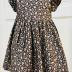 Dark brown short-sleeved summer cotton dress with grey floral print.
