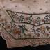Sleeveless, chest-colored suit vest decorated with floral and plant motifs. The collar, buttons and pockets are covered with floral garlands and lace. The jacket is fastened with buttons and tightened with a string at the back.
