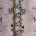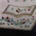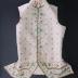 Beige sleeveless men's vest à la française, decorated with floral and plant embroidery. The vest is covered with small blue, red and pink flowers. There are numerous decorations on the pockets and bottom of the vest. The edges of the vest and the pockets are decorated with a garland of golden rods. The vest was tightened at the back with a string.