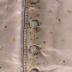 Front part of a men's waistcoat. Made with beige coloured silk with small flower embroidery spaced out over the gilet. The leaves are green and the petals are either blue, yellow or white. Each front has a pocket and pointed pocket flap. The edge of the pocket and around it, is embroidered with a light blue trimming. The same floral design is present in the pocket as well as around it following the shape of the pochet, which consist of the same flower in different colours all attached to the same stems. The same design and blue line is along the bottom of the waistcoat and it continues along the opening under the buttons . On the edge of the buttons there is a blue line and in its center the same flower found on the design in the color white. On each side there is linen fabric that would be part of the back which is missing.