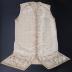 Ivory colour silk men's vest adorned with multicolor embroideries representing flowers, garlands, cherries and ears of wheat. It has two pockets, and thirteen embroidered buttons all remaining. The lining and back are made of linen. A golden wedding ring is sewn to the collar.
