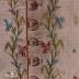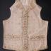 Ivory waistcoat lined with pink silk and embellished with blue and pink flowers. Stems and roots line the rim of the vest as well as the pockets and button line. At the top are two collar flaps, instead of a mockneck collar.