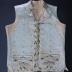 Silk waistcoat lined with woollen fabric, with pale green silk on the front, embroidered with flowers, feathers and chevrons. The ten buttons and the borders are adorned with pansies, carnations and ears of wheat. The pockets of the vest are embroidered with a complex vegetal pattern enhanced with sequins and silver thread.