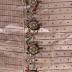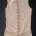 Silk satin vest embroidered with a striped and vegetal pattern. The pockets and the borders are adorned with silver thread ribbon scrolls, and the ten buttons reveal a star-shaped pattern. The lining is made of linen, and the back has a range of holes and a ribbon to adjust the waistcoat to the wearer.