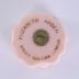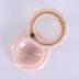 Pink eye shadow container. It has a circular shape with a wavy contour. The top part and the bottom part get wider from all sides at the end. On the top, there is a gold arrow following the extremity of the container and an "A" with wings is in between the arrow and starting point. In the center, taking much of the surface, a transparent plastic would have made it possible to see the colour of the eye shadow. At the back, in the center, there is a gold disk with the word "SHEIK" on it. Following the curve of the container, the brand name and city names are around the disk in gold.