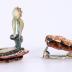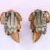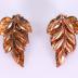 Pair of golden leaf "Laurel" clip on earrings designed by Matisse. This bronze weed has three rows of leaf pairs, with one extending at the top. It sits on a flat enamelled surface which compliments the shape of the leaf branch.