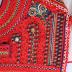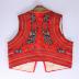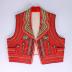 Red wool men's folk waistcoat richly adorned with floral multicolor embroideries on blue chintz inserts, red soutache braid forming intricate scrolls and metal beads. The collar is made of embroidered red wool. The coat has four pockets (including two inside) and a lining made of thick cotton.