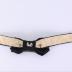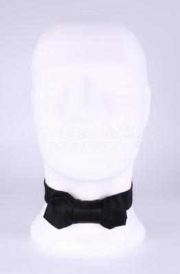 Silk black bow tie with beige silk lining. The collar is tied like a belt. There is a silver stamp on the lining near the attach.