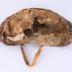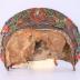 Upper part of a traditional mask used for the Malang theatrical dance, organized in East Java island (Indonesia). The tiara is carved with vegetal branches and pink flowers, joining in a central point on which a flower with a burning gem is figured. A fabric link and two side holes allow to adjust it for the wearer.