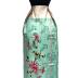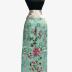 Chinese wraparound skirt traditionnally called mamianqun : it is composed of two apron separated by two panels of pleats. It is made of green damask silk embroidered with cherry tree branches and butterflies. A pink braid is sewn around the aprons and at the bottom of the skirt, while a white cotton belt with buttonholes allows to hold the skirt. One panel of pleats was sewn afterwards and cannot be opened.