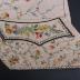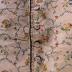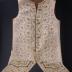 Beige silk men's vest with black border on the collar, the opening all the way down to the sides at the bottom and the pockets. Next to the line is another line but made of sequins. All over the front of the the waistcoat and on the pockets are floral embroidery of multiple colors. The back is made with a brown colored linen from the waist up.