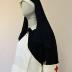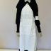 Black wool uniform dress of the Red Cross nurse during WWI: black kerchief with white trimming, white cotton apron skirt, black woolen dress and whitecotton armband with red cross
