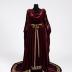 Burgundy colour velvet dress embellished with golden embroidery of Norma for the Vicenzo Bellini opera "Norma" 2nd act. Made at the Costume workshop of the Lithuanian National Opera and Ballet Theatre. First day 1987.05.15.
