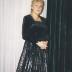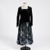 Concert costume consisting of a black velvet long-sleeved top decorated with matching fabric application of leaves, lurex skirt and rope belt, embellished with artificial pearls.
