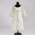 Ivory silk transparent dress with high waistline decorated with light blue bow, butterfly sleeves and neckline trimmed with lace.