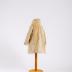A winter ivory plush girl’s coat with quilted ivory silk lining, high funnel collar, also with quilted lining and a cord casing through the edge.