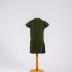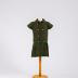 А green tartan girl's low-waisted double-breasted day dress with pleated skirt, short sleeves and Peter Pan collar, edged with white lace.