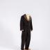 Boy‘s black wool double-breasted tailcoat with a pair of trousers. Peaked lapels and buttons are covered with an elephant-grey silk. The trousers are fastened on metal buttons with the graving "solide neuheit" ("solid novelty" in German).