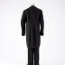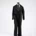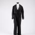 Accompanied by evening pants with turn-ups (2025.1.8.4ab); blue suspenders with orange leather details, Paris, circa 1930s; white shirt with a stiff bib, labelled “Disle / Le chemisier de Paris”; black textured silk wide tie with small white polka dots.