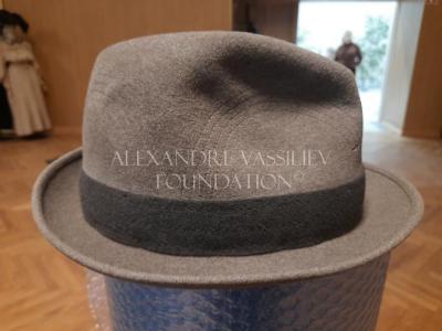 Grey felt trilby hat stitched with arches, with dark grey felt hat band and cream silk lining. Labelled by Scotford & Co., the hatter to the Royal family.