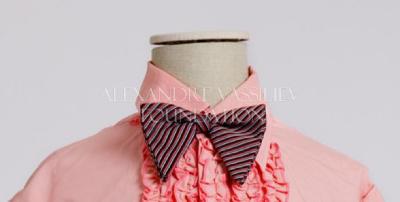 A silk twill bow tie in dark blue, red, pink and white diagonal stripes, tipical Italian tie design.
