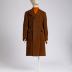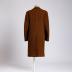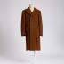 Brown men's coat made of herringbone-patterned Harris Tweed fabric, double-breasted, with wide notch lapels, three pairs of buttons, two deep flapped patch pockets and a high vent. Designed circa 1970s in 1930s style. This coat was made in England for the Swedish clothing company Gulins and imported to Sweden. It is somewhat unusual in that – during this time most coats on the Swedish market were still made in Sweden.
