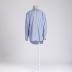 Blue cotton shirt with a thin pink checkered pattern, has cuffs with turn-ups for the cufflinks, spread collar and placket fastening.
