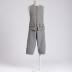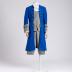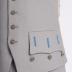 Cosplay costume from the Napoleonic Wars of the late 18th century, consists of frock coat, waistcoat and knickers. A light blue collarless frock coat made of heavy wool cloth with seven openwork metal buttons, sleeves with grey cloth turn-up cuffs, that have soutache trimmed welt loops and 4 buttons; has welt pockets with figured flaps on the foreparts, three loops on each flap and openwork buttons under them, a high rear vent from the waist. A grey woolen waistcoat made of thick cloth with 9 openwork white metal buttons, with welt pockets and same figured flaps with three loops on each of them. A grey wool knickers with cuffs fastened with velcro and have four false openwork metal buttons on each leg, a rear welt pocket closed on the same button; the knickers themselves fastened with a metal zipper and buttons.