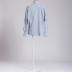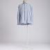 White cotton shirt with blue tattersall check with long sleeves, cutaway collar and chest patch pocket.