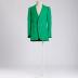 Green linen canvas with lavsan men's jacket in "Fear and Loathing in Las Vegas" style, close fitted, single-breasted with wide lapels, two huge rounded patch pockets, stitched with white thread by the edges; fastened with two large buttons made of beige plastic and has two more on each sleeve, with two rear vents.