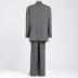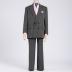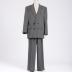 Men's summer suit, made to order from fine grey herringbone wool, consists of a double-breasted jacket and classic trousers. The jacket with moderately wide peaked lapels has buttonholes on both, fastens with two pairs of buttons and has three more on each sleeve, two valve pockets and a chest leaflet one, two rear vents. Classic trousers have two rear welt pockets. Made to order in USA.
