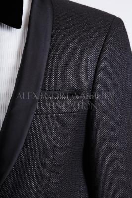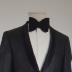 White twofold super cotton tuxedo shirt with chest pintucked plastron, wing tip tuxedo collar and French cuffs for cufflink closing.