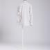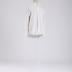 White cotton shirt with yellow and grey stripes with cutaway collar and patch pocket at the chest.