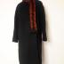 Autumn-winter collection black colour middle lenght women's coat, doubled with fur on the collar ending with a black bow.