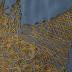 Cape-burnoose made of steel blue wool cloth with couched Ottoman embroidery in gold gimp, with a deep hood tied with piping made of the same cloth with gimp tassels on the ends.